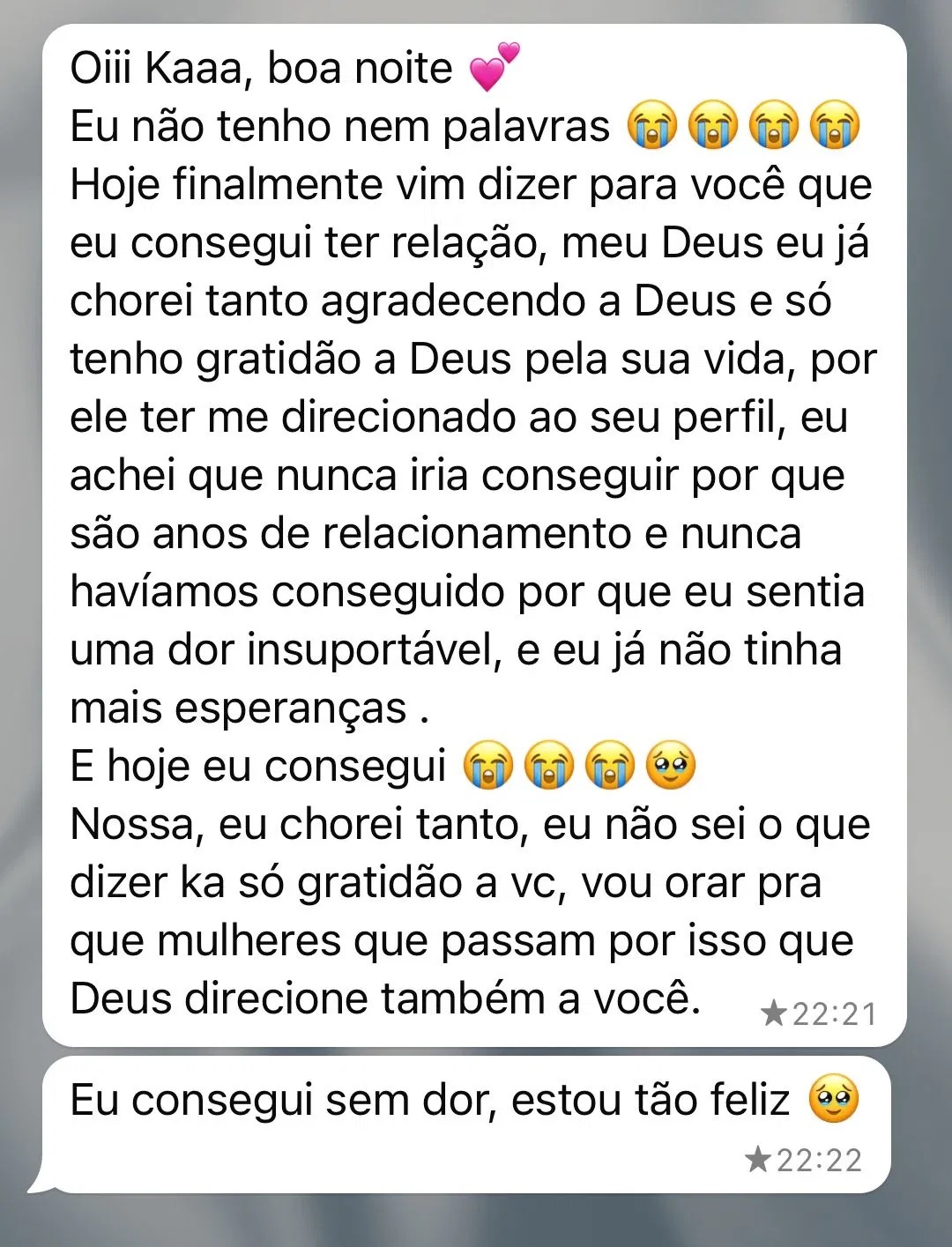 ✨ Você viverá uma intimidade plena, sem medo e sem dor.